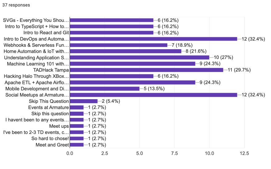 We've asked you how we can make Tampa Devs better, and 38 of y'all responded! Here's the results: